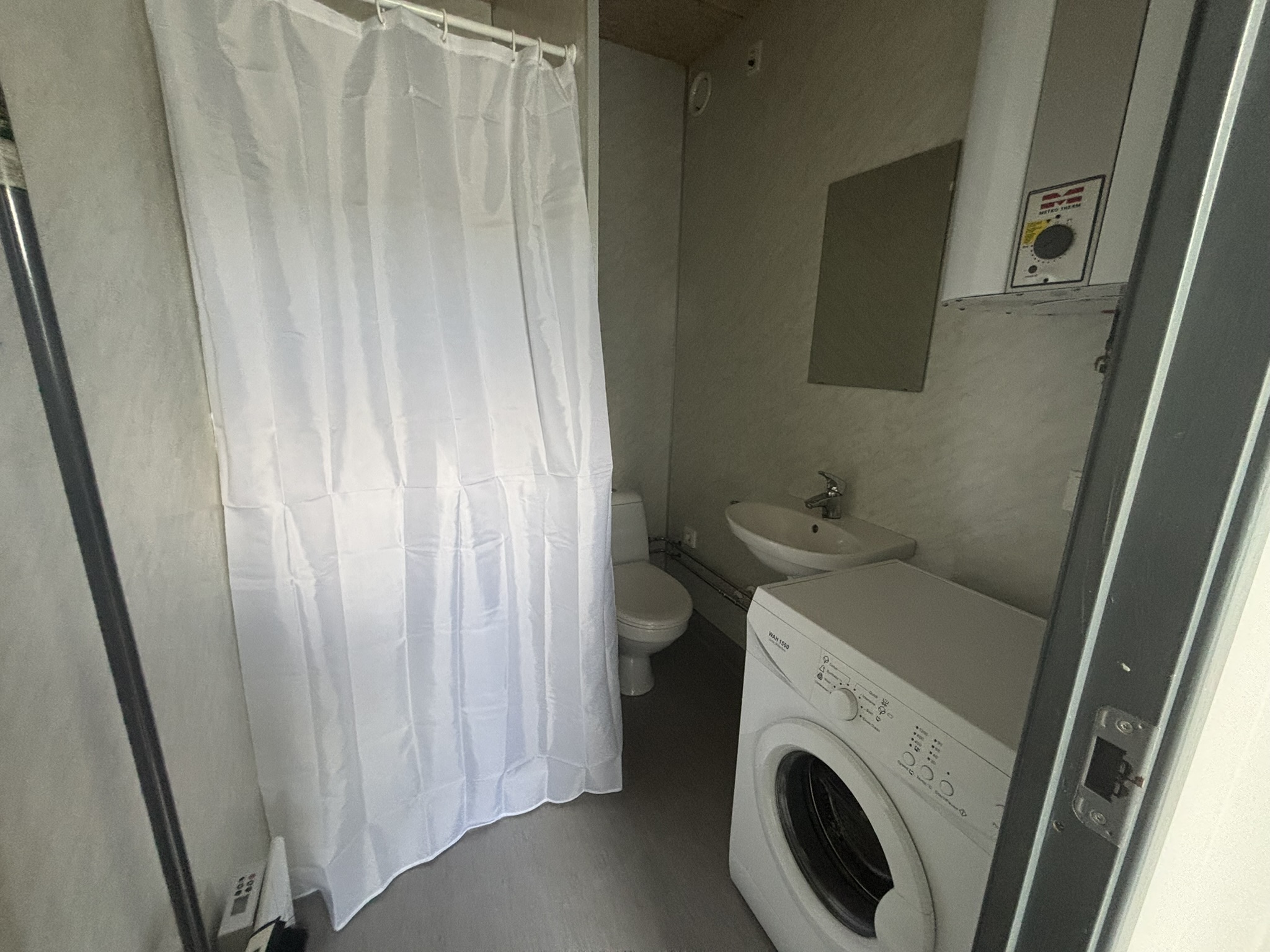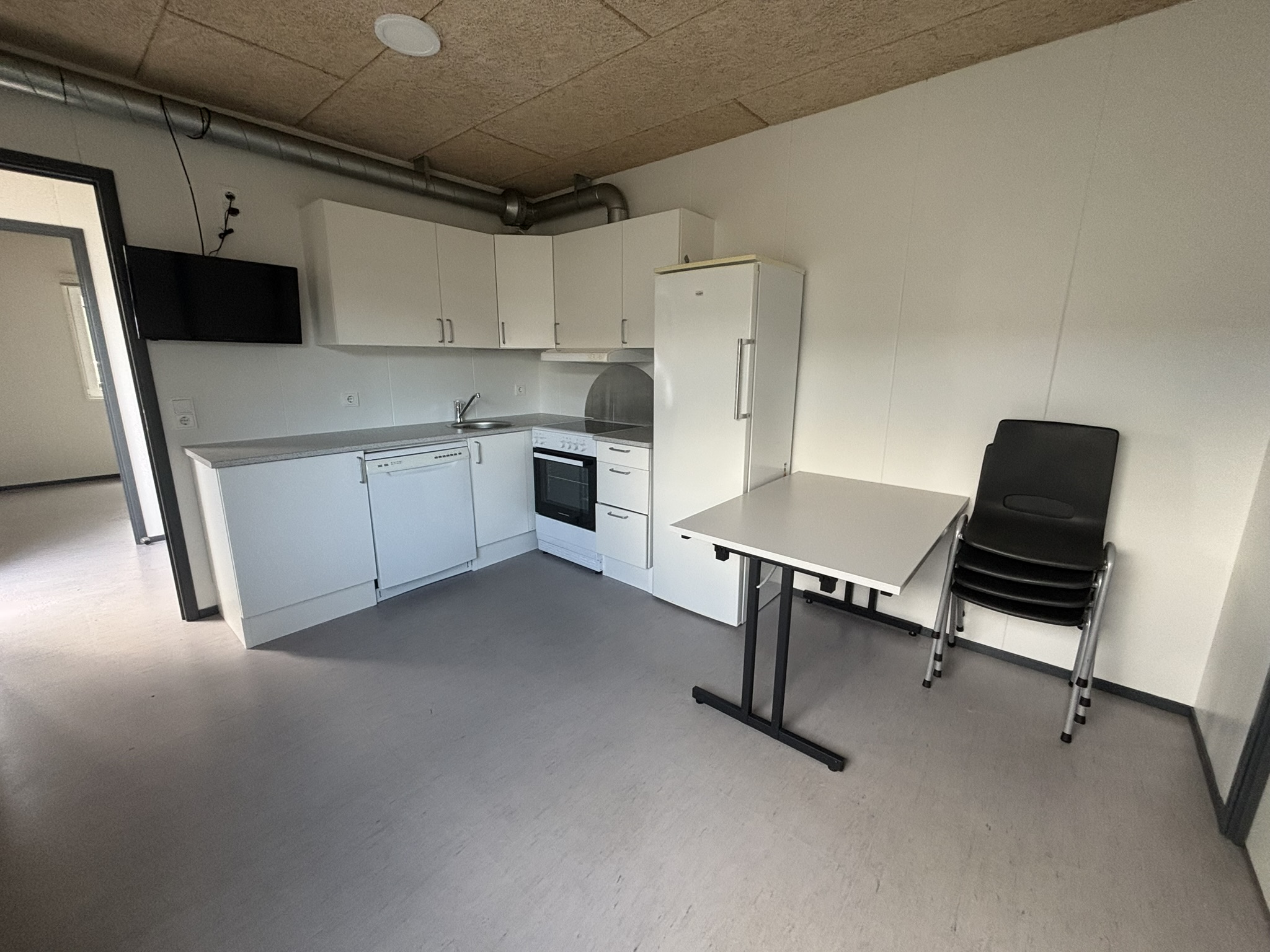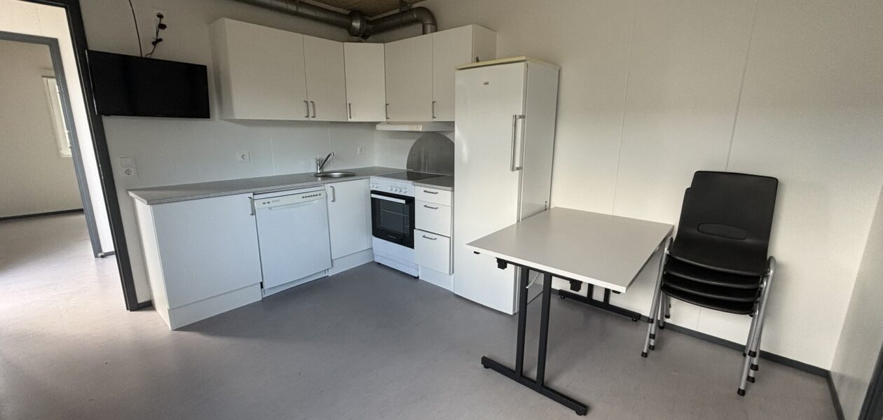 I køkken/alrummet kan man få plads til en 2 personers sofa og sætte et tv-bord ind, hvis man ønsker det.