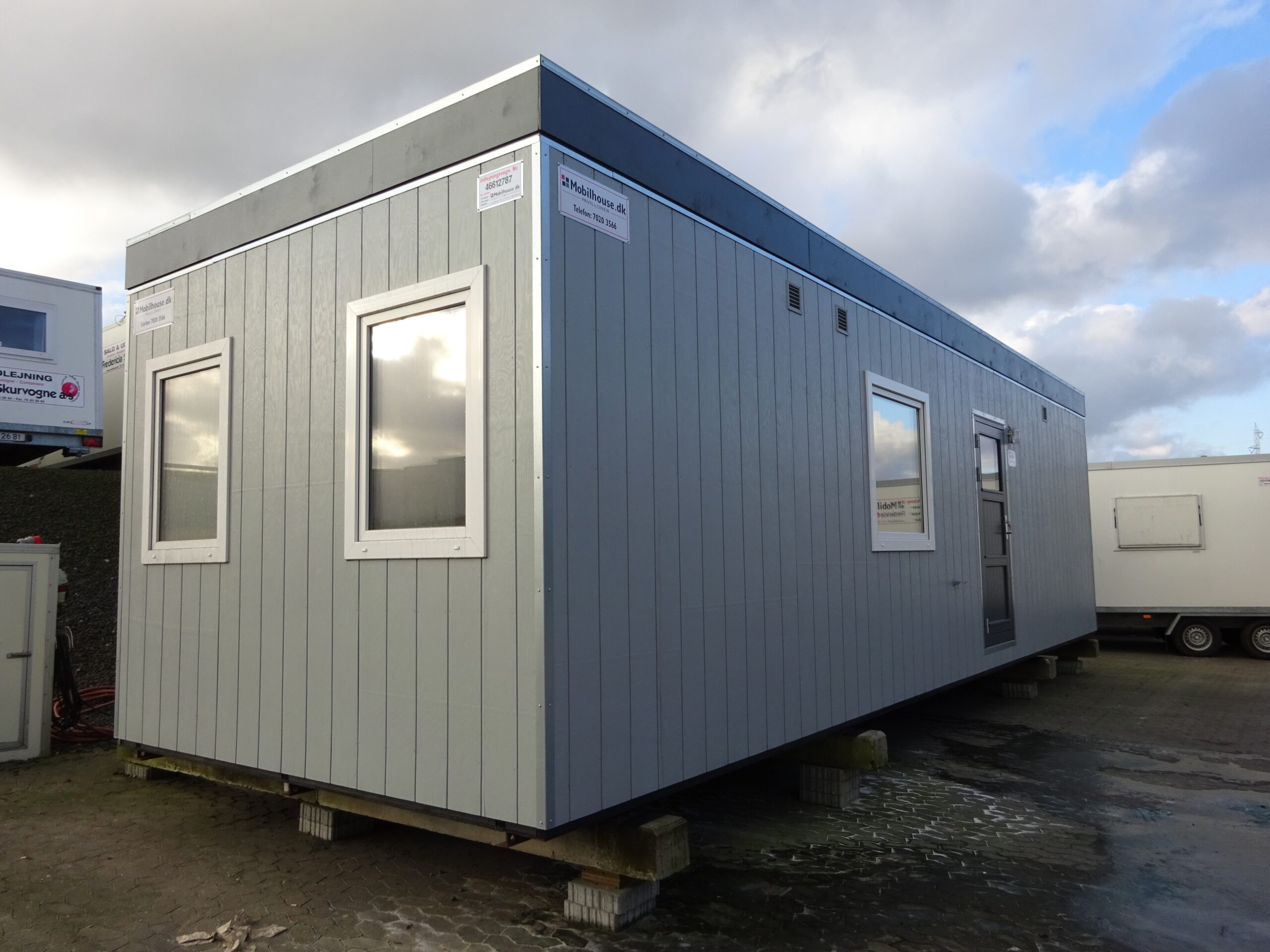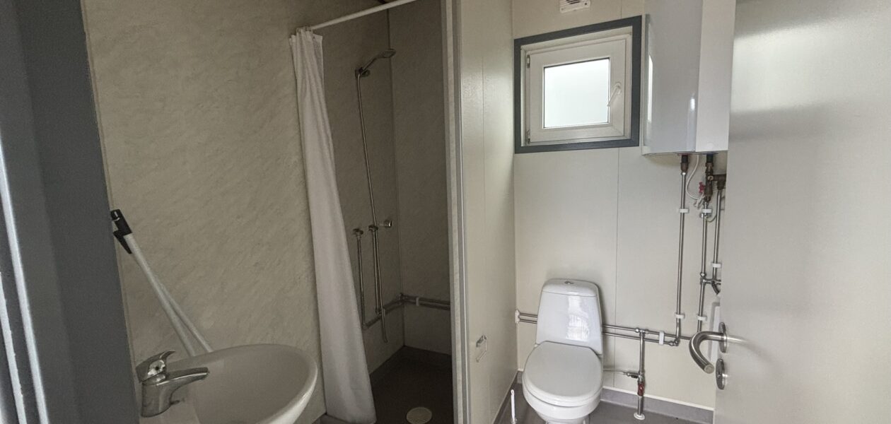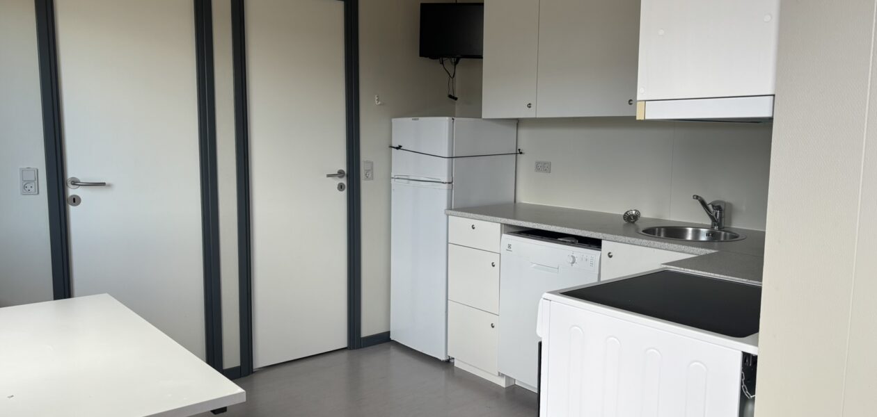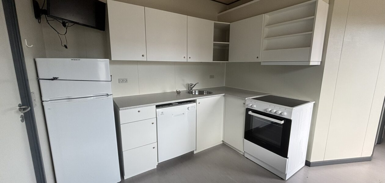 Beboelsespavillon med køkken og spiseplads til 4 personer, forgang, 3 soverum med skabe og komplet badeværelse. Der er monteret TV. Mulighed for tilvalg af enten tørreskab eller vaskemaskine og tørretumbler.